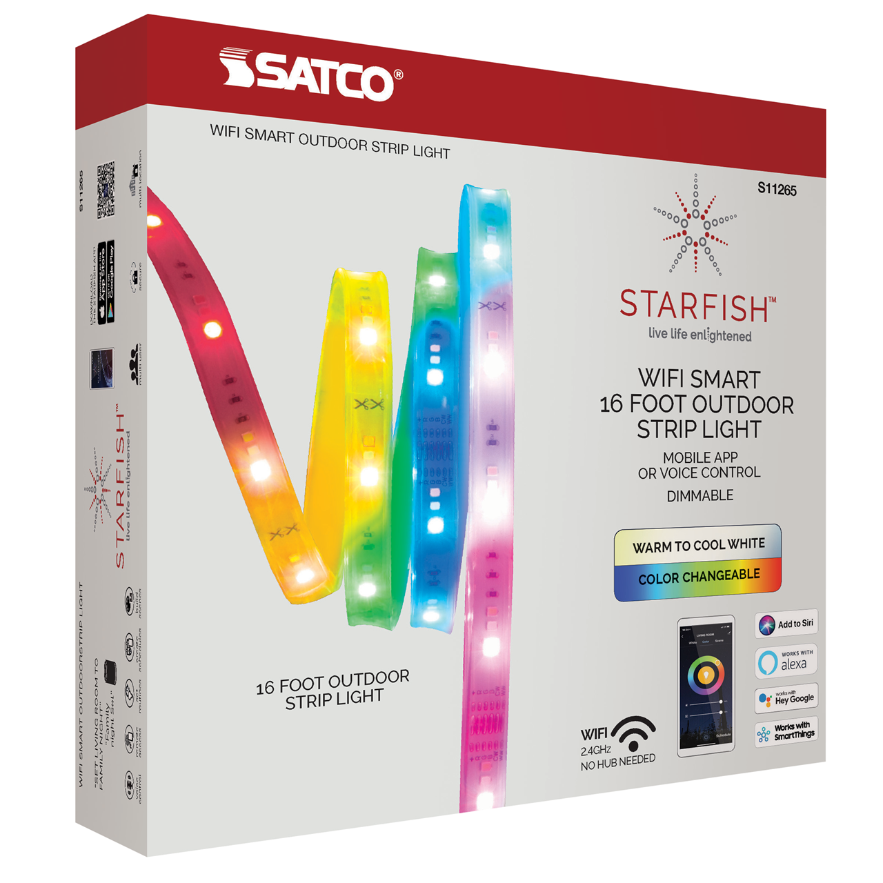 28W 16' Color changing and tunable white outdoor tape lights with RGB and warm to cool white settings are wet location certified. Self-adhesive and dimmable like their indoor counterparts and can be used both indoors and out. Used outdoors, they bring hours of after-dark fun, added safety and intrigue to backyards and landscapes.